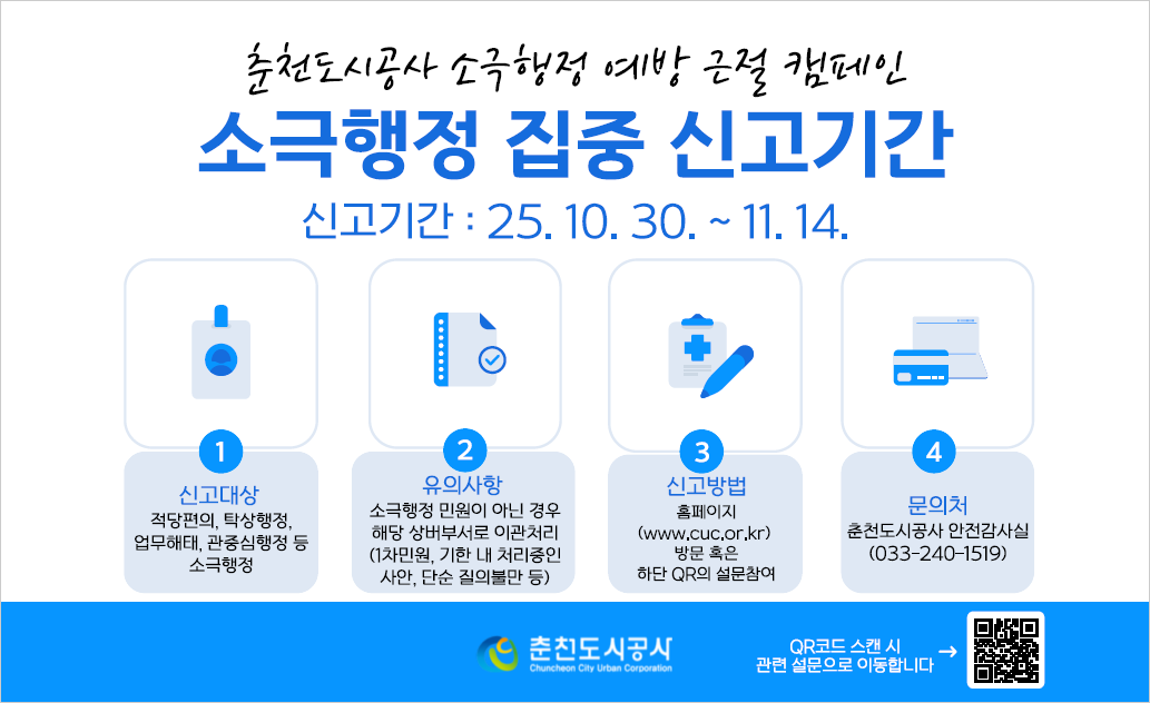 | 개인정보 보호책임자 | 경영본부 | 홍승표 | Tel. 033-240-1504 email. D2025003@cuc.or.kr |