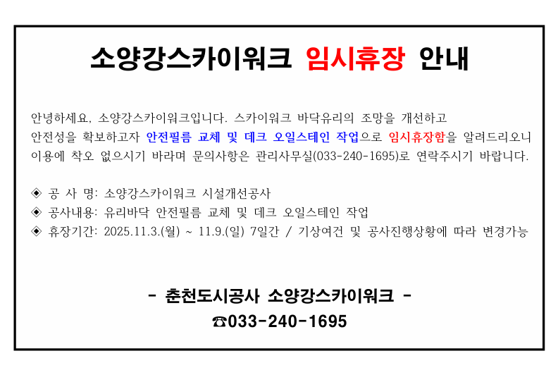 소양강스카이워크 임시휴장 안내