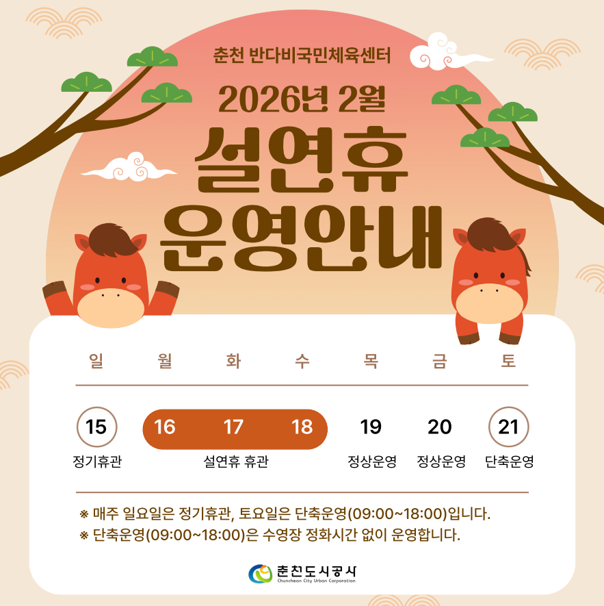 반다비국민체육센터 설 연휴 운영 안내