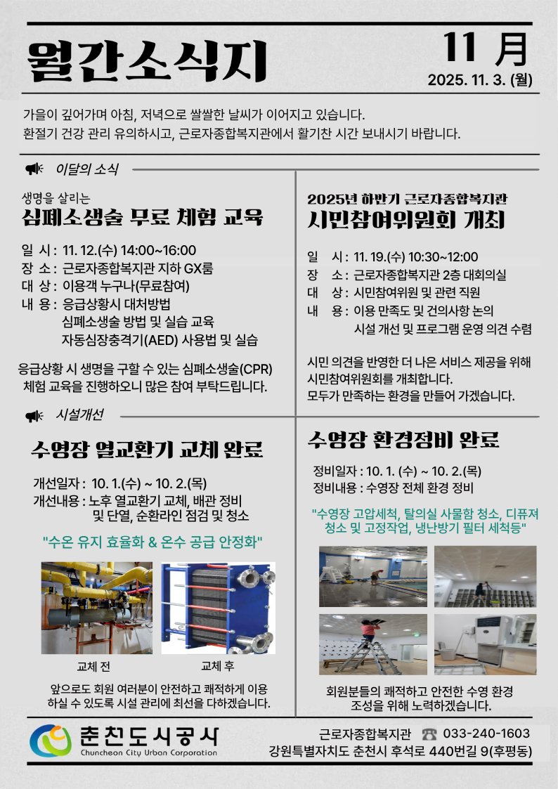 [근로자종합복지관] 근로자종합복지관 월간소식지 11월호