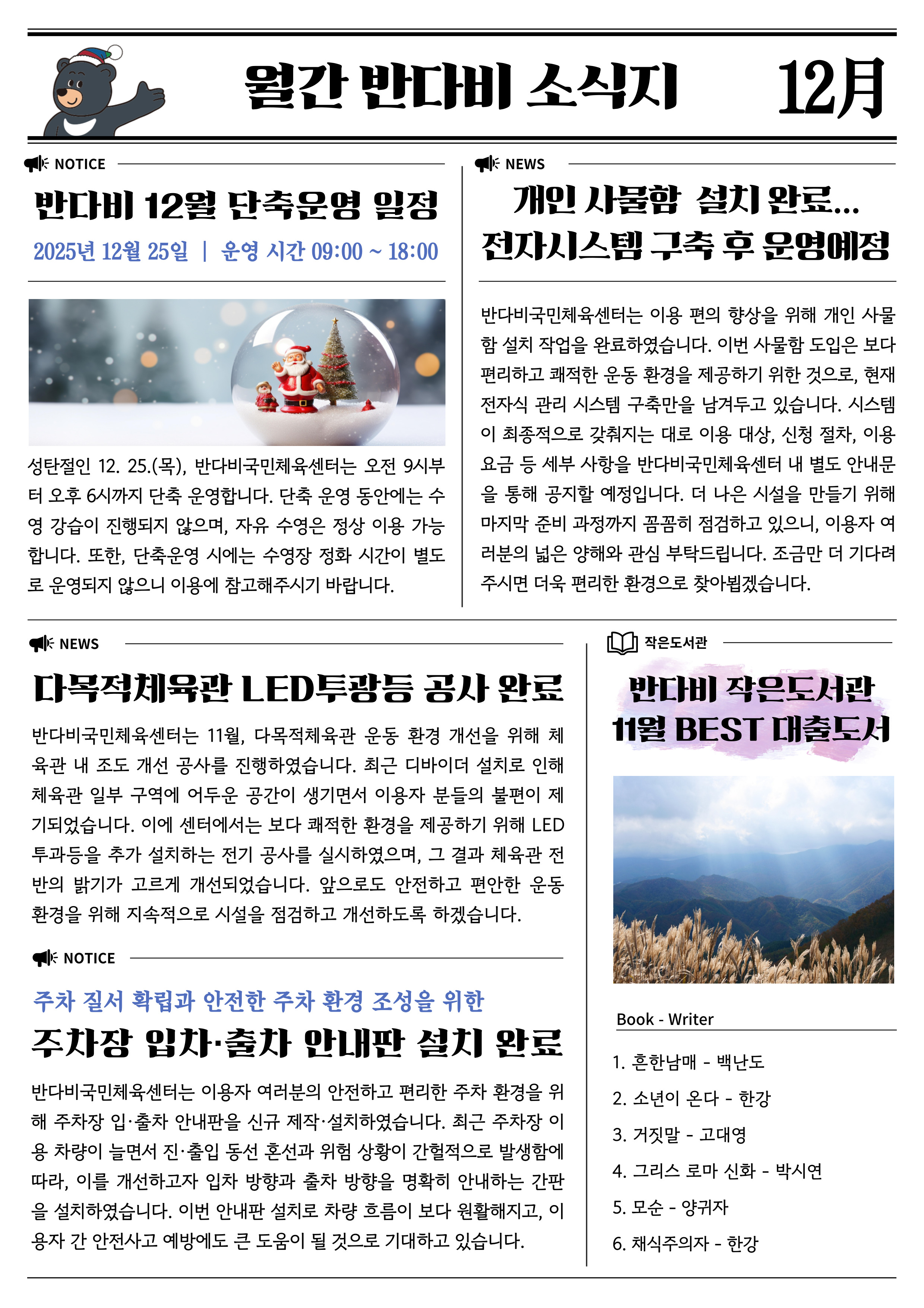 [반다비국민체육센터] 반다비국민체육센터 월간소식지 12월호